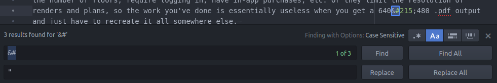 I like to use Pulsar as my editor (formerly known at Atom, similar to VS-Code but open source). I got through about 5x old posts of find/replace. In every single post there were at least 5 different characters. Mainly quotations, ellipses, and dashes. But they like to show up multiple ways. Opening quotes are unicode character 8220, closing quotes are 8221. Sometimes I talk about building materials, so inches show up as 8243. Sometimes things showed up as a en dash, or em dash. When calling out a 2x4 piece of lumber, there’s a special “x” character that’s different than a regular old ASCII x for some godawful reason.